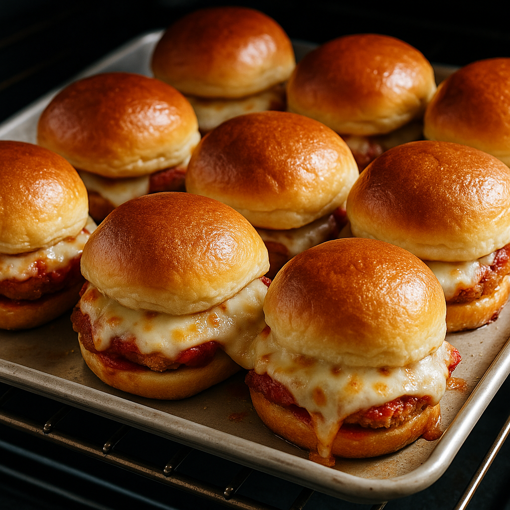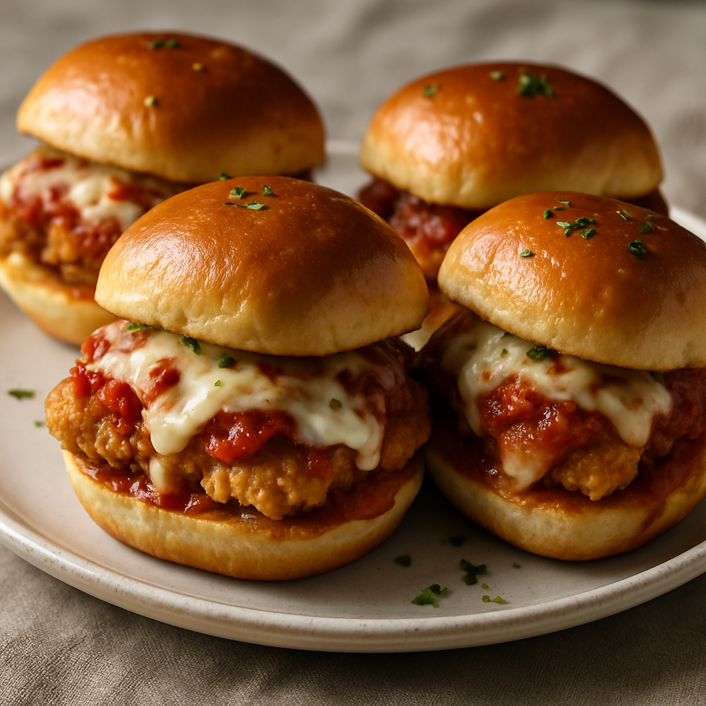 Chicken Parmesan Sliders combine crispy chicken cutlets with melted mozzarella and a rich marinara sauce, all sandwiched between soft, pillowy buns. The contrast of the crunchy exterior of the chicken and the juicy, flavorful interior makes each bite an irresistible treat. Topped with fresh basil and a sprinkle of parmesan, these sliders offer a delightful play of textures and flavors—perfect for any gathering or weeknight dinner.