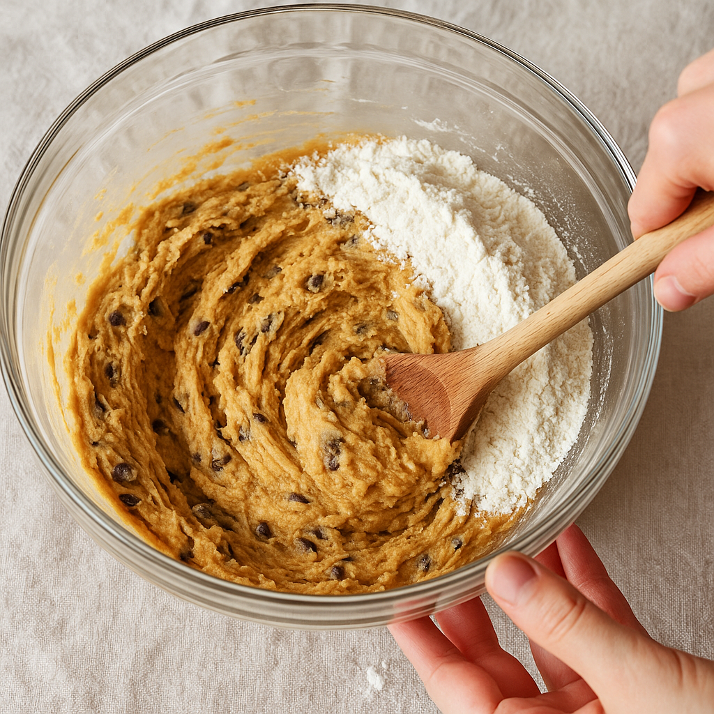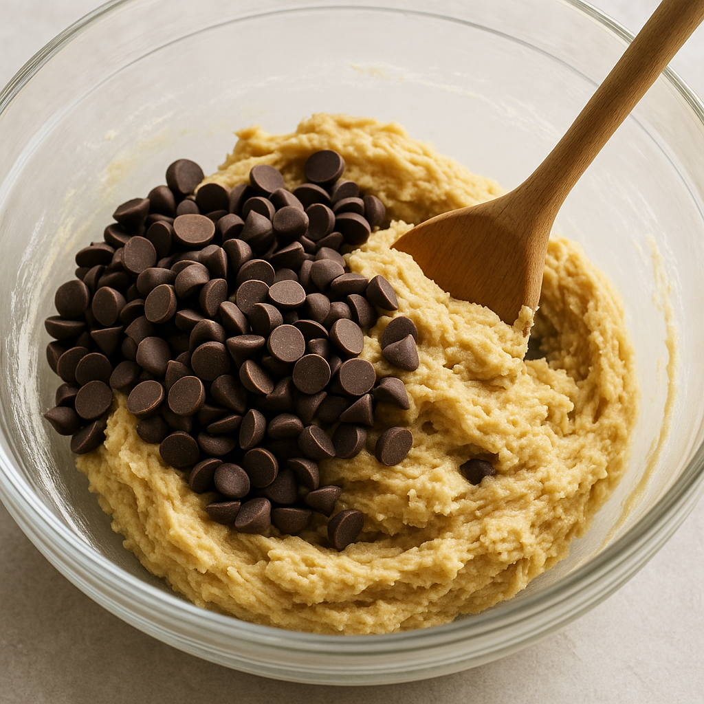Gently fold in the semi-sweet chocolate chips until evenly distributed in the dough.