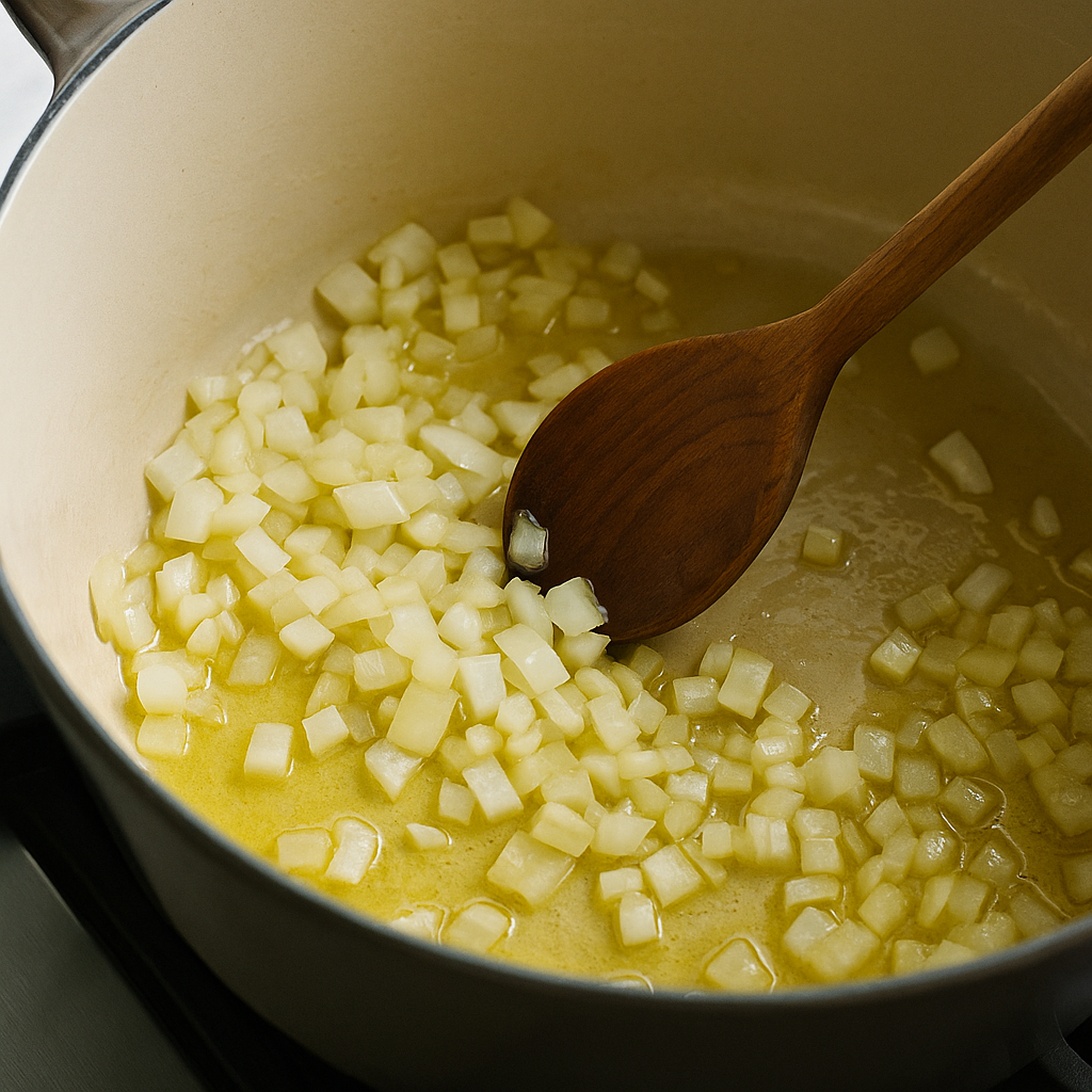 In a large pot, heat olive oil over medium heat. Add the chopped onion and cook until soft, about 5 minutes.