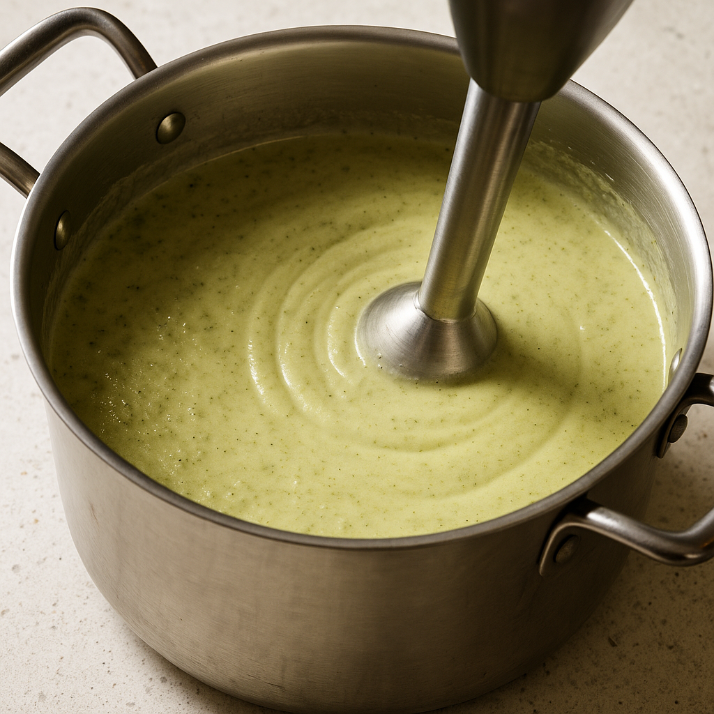 Using an immersion blender, puree the soup until smooth. If using a regular blender, blend in batches, being cautious with hot liquids.