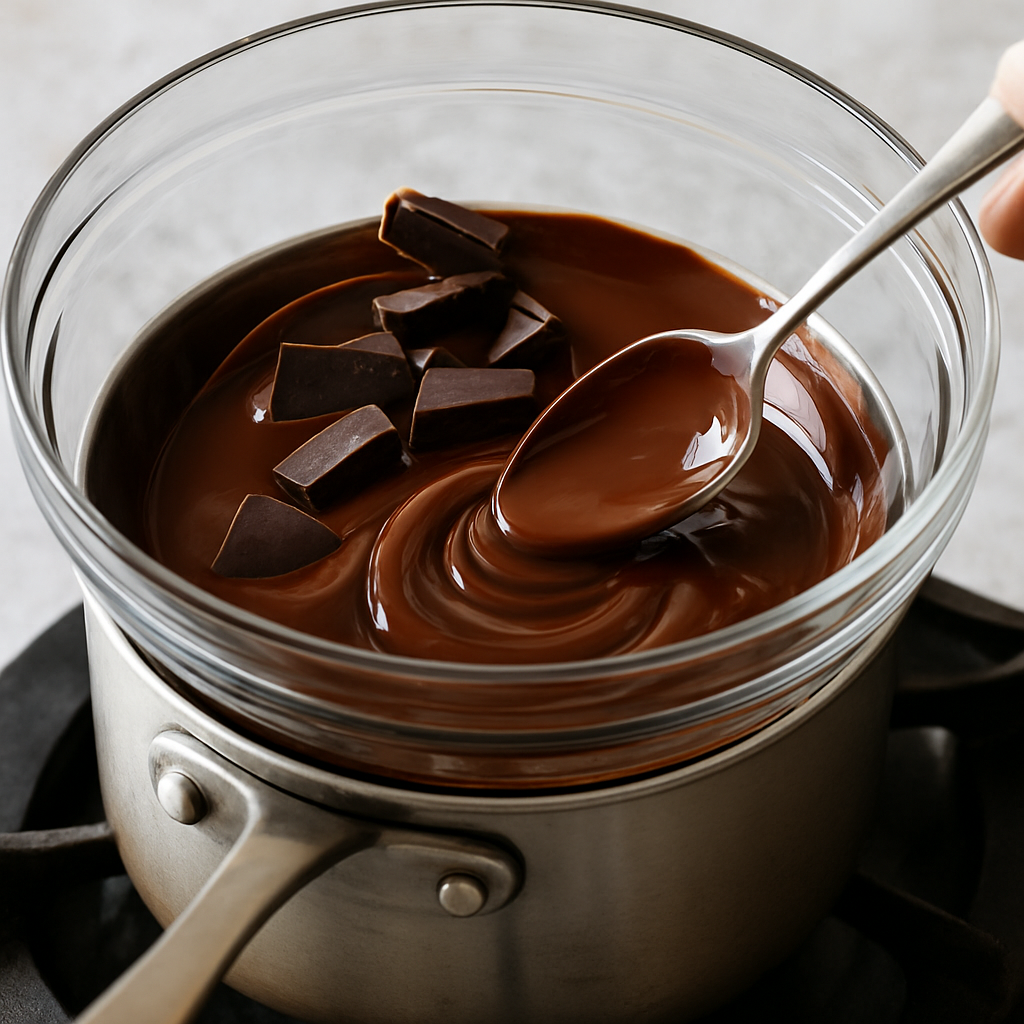 In a heatproof bowl, gently melt the dark chocolate over a pot of simmering water, stirring until smooth.