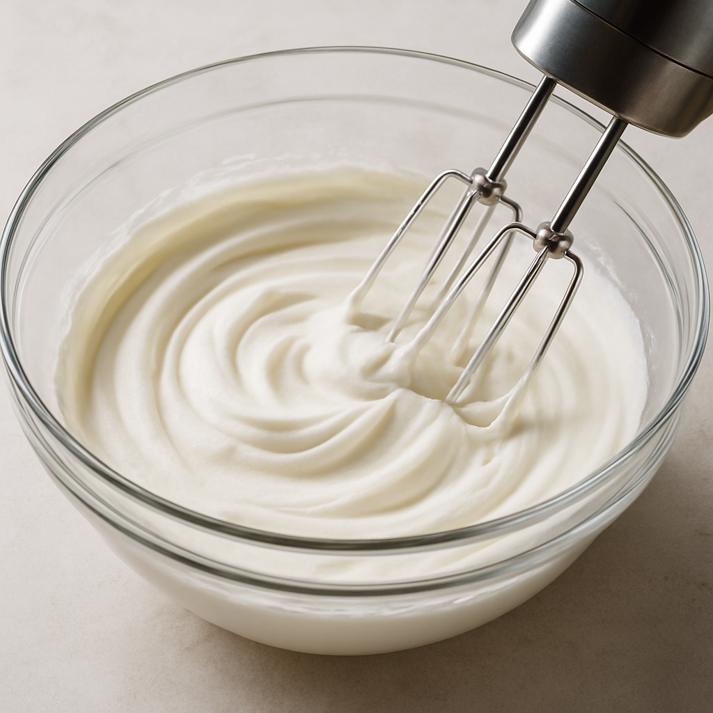 In another bowl, whip the heavy cream until soft peaks form, making sure not to over-whip.