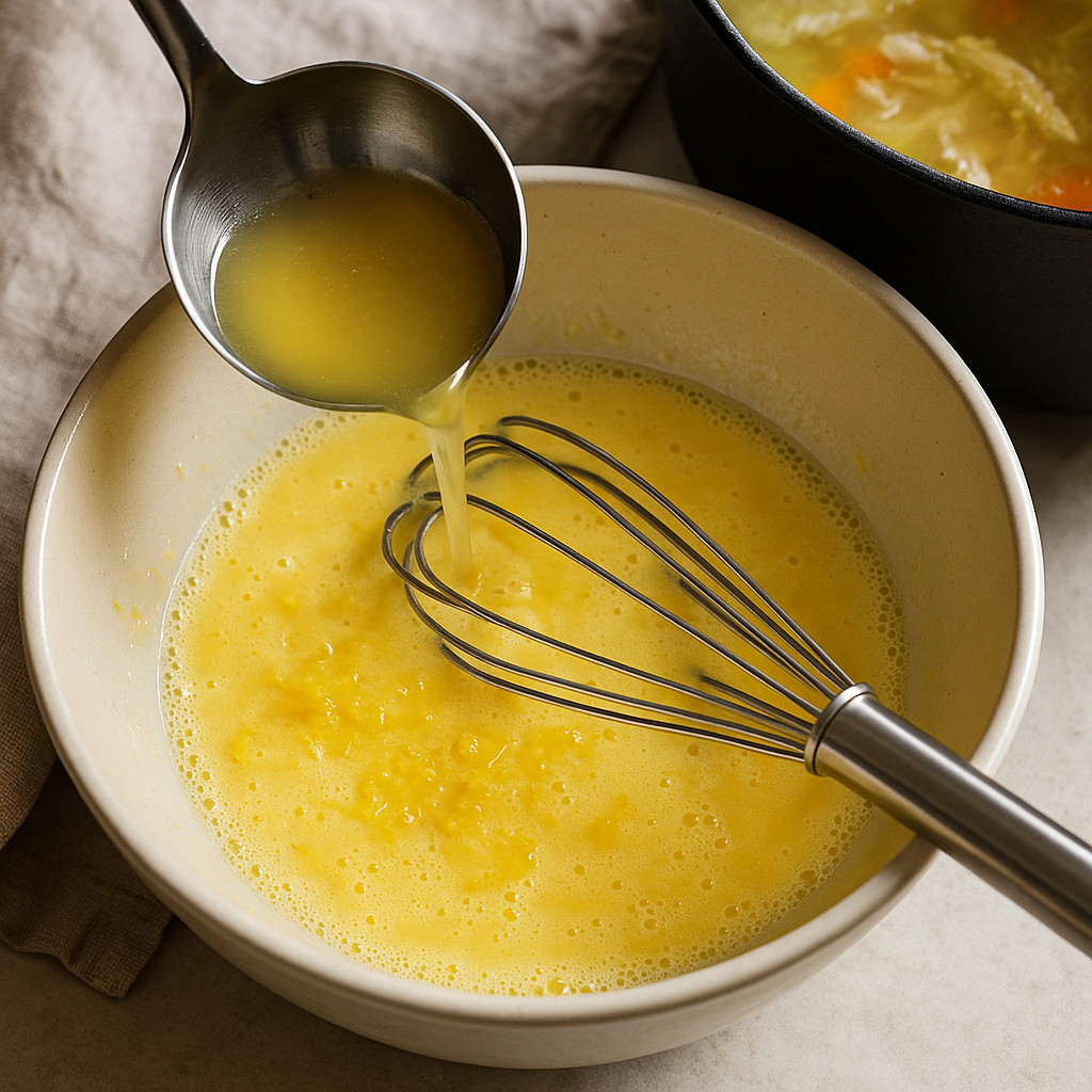 Slowly temper the mixture with a few ladles of hot broth, then stir it back into the soup.