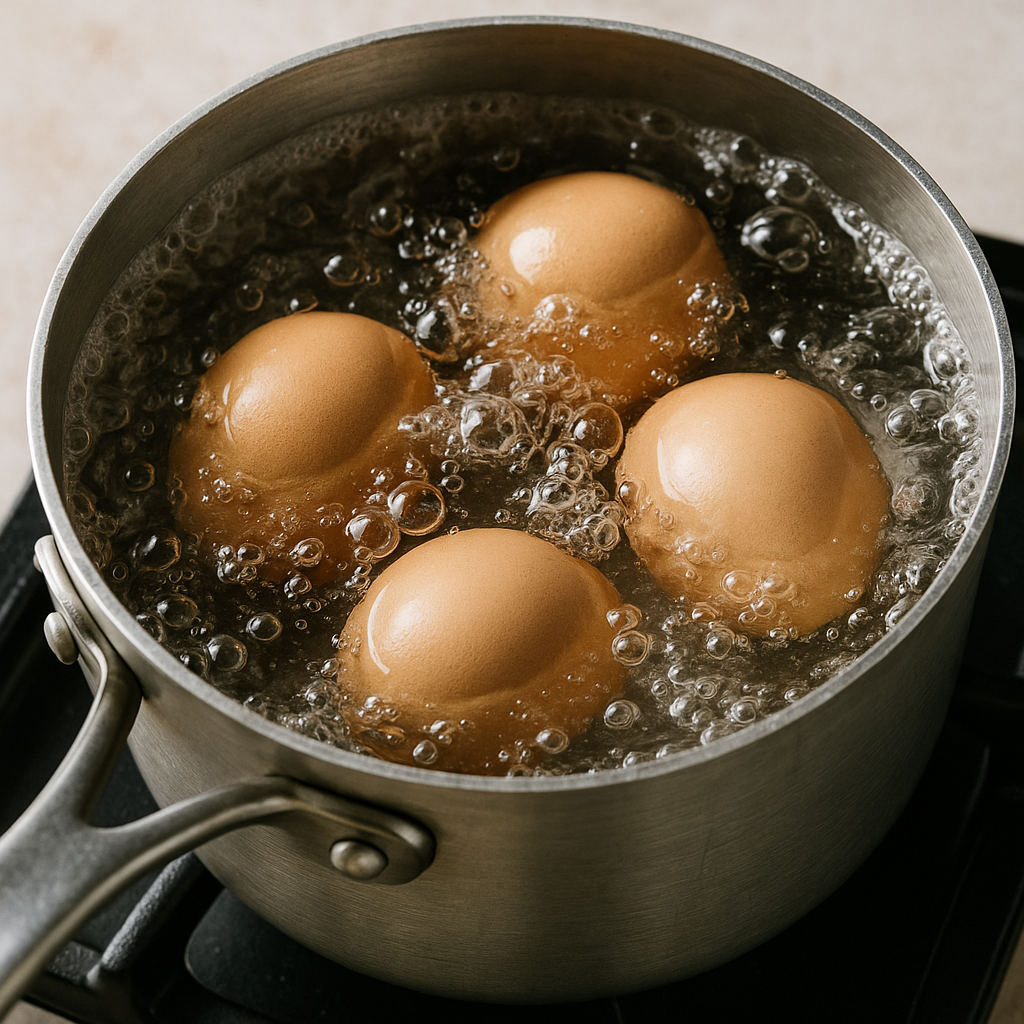 Boil for about 6-7 minutes, then transfer to an ice bath for cooling before peeling.