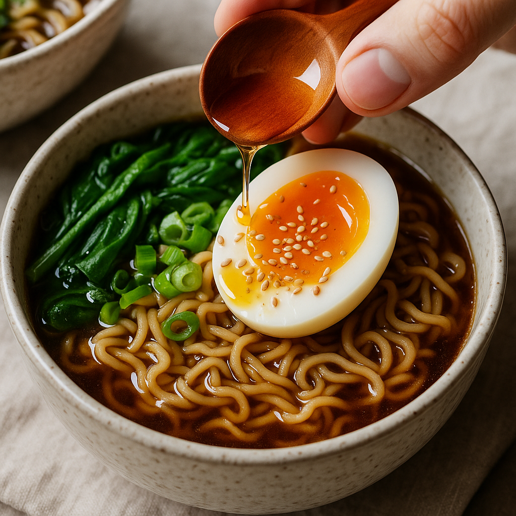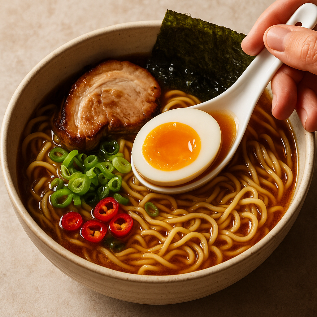 Pair your ramen bowl with a light, crisp sake or a fruity Gewürztraminer for a perfect wine complement. For a non-alcoholic option, enjoy this dish with a refreshing iced green tea that adds a cleansing note to the meal. Serve the ramen alongside pickled vegetables or a side salad for extra crunch, and consider adding gyoza or spring rolls as additional shareable plates to round out the feast.