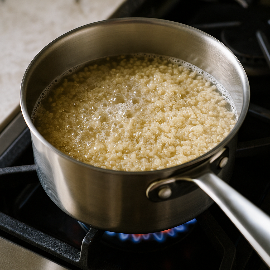 Bring to a boil, reduce heat to low, cover, and simmer for 15 minutes or until quinoa is fluffy.