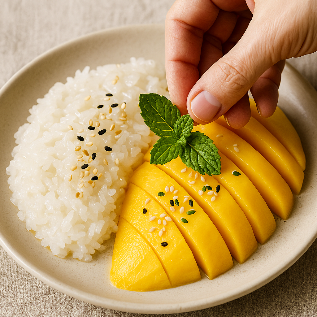 Pair this delightful dessert with a light, fruity white wine such as a Riesling or a Moscato, which complements the sweetness of the mango beautifully. For those looking to enjoy a non-alcoholic option, a refreshing iced jasmine tea works wonders. Serve it alongside crispy spring rolls or a hearty Thai curry to create a balanced menu that showcases the best of Thai cuisine, or enjoy it as a stand-alone indulgence to satisfy your sweet tooth.